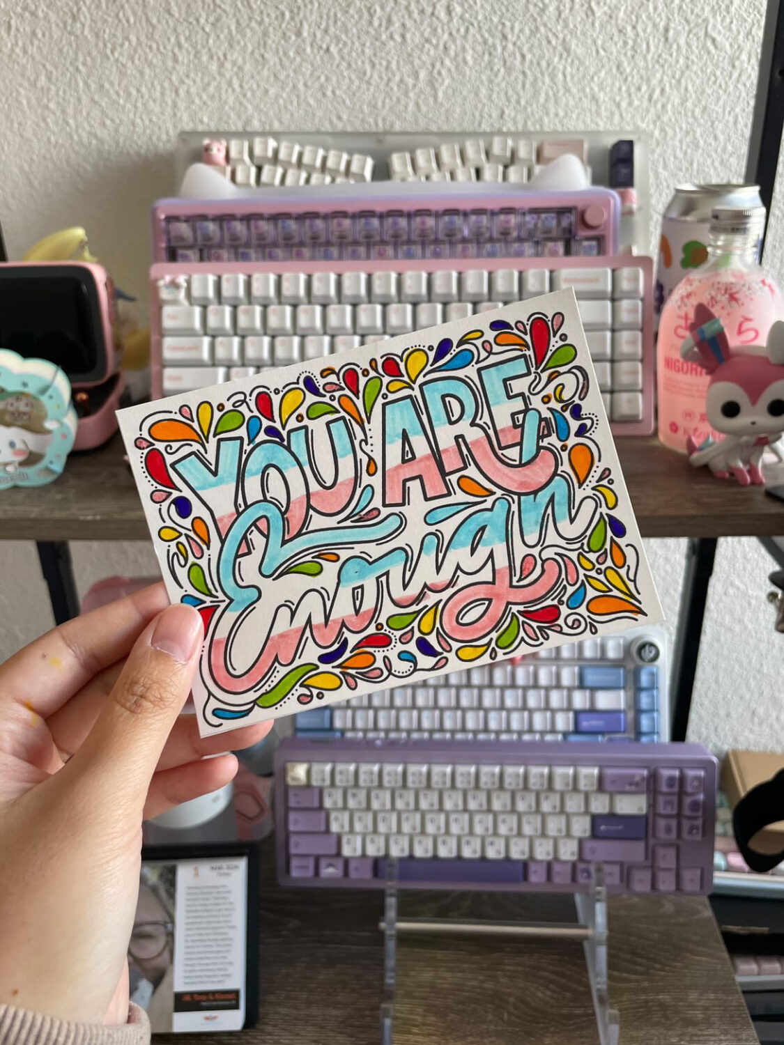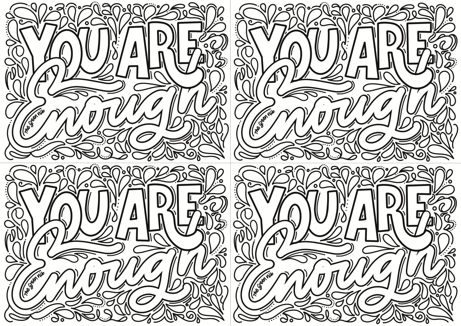 4x A6 colouring cards 'You Are Enough' you can download and colour. They are great for a relaxing moment and you can use them to spread kindness.